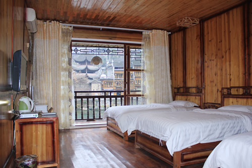 古樸的客房內(nèi),超大陽臺全景落地窗,是您欣賞沱江風(fēng)光帶首選客棧,兩座百年四合院內(nèi)小橋流水,假山錦鯉,一百三十平米休閑花園別具情調(diào)。紅酒加咖啡的大堂吧、彩色精致的情調(diào)房、古典高雅的臨江觀景房以及大型公共觀景平臺,龍閣的點點滴滴都透著出古城的神韻和幽靜,走進(jìn)龍閣客棧,給您一個完美的鳳凰古城沱江全景!