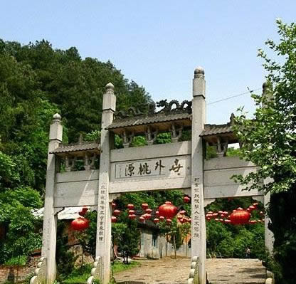 東漢建武二十四年(公元48年),伏特將軍馬援南征五溪"蠻",曾駐軍烏頭村,今桃花源附近尚留有他避暑的"馬援石室"以及他曾設(shè)帳蓬的"營(yíng)盤洲".他的將士曾患瘟疫,當(dāng)?shù)乩习傩斋I(xiàn)"三生湯"(即擂茶)為將士治愈瘟疫,因而桃花源這一帶,留下關(guān)于擂茶的傳說和以擂茶待客人的習(xí)俗,相沿至今.就在此后兩年,即東漢建武帝二十六年,從臨沅縣中析置沅南縣,禁屬武陵郡,桃花源屬沅南縣三國(guó),兩晉,南北朝,桃花源均屬武陵郡沅南縣.就在這一歷史階段的晉代(公元前3世紀(jì)中葉至5世紀(jì)初),桃花源這處山水風(fēng)光地便開始有了建筑.明陳洪謨編纂的<嘉靖常德府志>載:桃源觀,晉人建."道觀因建在桃源山上,故名"桃源山"即是桃花之源或者桃樹之源的山,是桃林茂密,桃花繽紛,美不勝收之處.南北朝宋初二年(公元421年),東晉大詩(shī)人陶淵明寫下了千古杰作<桃花源詩(shī)并序>,他用浪漫主義的大手筆構(gòu)造了一個(gè)沒有紛爭(zhēng).沒有剝削,沒有壓迫豐衣足食,怡然自樂的理想王國(guó)--桃花源,反映了人民群從和平寧?kù)o,幸福美好生活的向往,也體現(xiàn)了人民群眾對(duì)黑暗社會(huì)的抗議.陶淵明從小受儒家"大同世界"的理想,又有道家"小民寡民"的思想的影子.陶淵明繼承了楚文化和屈原的"楚風(fēng)",<桃花源詩(shī)并序>問世之后,石破天機(jī),使桃花源聲名大起,現(xiàn)實(shí)中的桃源山,桃源觀,桃花山,桃川宮(即桃源山濱臨之沅江一帶)等名勝景物隨之暇邇聞名.
