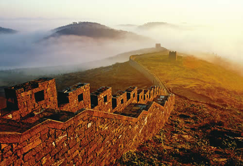 鳳凰南方長城 城墻高約3米,底寬2米,墻頂端寬1米,繞山跨水,大部分建在險峻的山脊上,沿途建有800多座用于屯兵、防御用的哨臺、炮臺、碉卡、關(guān)門,當時沿線一般駐有4000-5000人的軍隊,最多時曾增到7000人左右。明朝,湘黔邊境的苗人被劃為生苗和熟苗,生苗是不服從朝庭政府管轄的少數(shù)民族,他們因不堪忍受政府的苛捐雜稅與民族欺壓,經(jīng)常揭竿而起。為了安定邊境地區(qū),鎮(zhèn)壓反抗,明朝廷撥出4萬兩白銀,在生苗與熟苗之間修筑起了長城。清朝統(tǒng)治者后來也對苗疆長城作了部分增補修建。