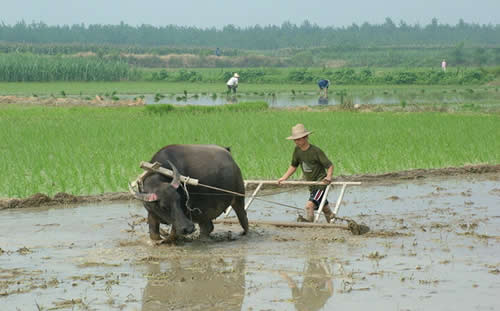 耕田 很多游客徜徉在袁家寨子的時(shí)候,對土家的農(nóng)耕文化頗感興趣,土家農(nóng)具、文化風(fēng)情,讓人興奮不已。眼下,草木蔥綠,又是農(nóng)耕時(shí)節(jié)。置身農(nóng)村田野,會(huì)看見農(nóng)人在田里揮著牛鞭犁田,聽見那拉長的吆喝聲不時(shí)回蕩。雖然現(xiàn)在也有用機(jī)械犁田的,但那傳統(tǒng)的農(nóng)耕文化,整田、打青、開秧門、吃蓋碗肉、糊倉等,卻也那般的獨(dú)特迷人。