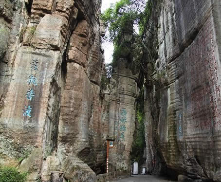 清嘉慶年間辟有洗心池。“不二門”如斧斫神劈,為石林天成,石林壁上鐫滿歷代文人的詩(shī)詠。這里古柏參天,藤蘿倒掛,環(huán)境幽美。有壁石如書的萬卷書者,有嵐霧束腰的七級(jí)青石培英塔。凝神盤坐的南海觀音是一塊天然造型的巨石,惟妙惟肖。觀音巖周圍,環(huán)繞著具有明清風(fēng)格的地藏庵、嵩山堂、水府閣等建筑物,布局靈巧緊湊,主題鮮明,因勢(shì)造景。景點(diǎn)間曲徑迂回,迷趣深?yuàn)W,稱八陣圖。景區(qū)內(nèi)的河灘上有兩處溫泉,氤氳縈繞,水溫適宜(41℃),水質(zhì)良好,能治療多種疾病?h城人民經(jīng)“不二門”前往溫泉就浴者絡(luò)繹不絕,現(xiàn)又增建了石牌坊和民俗博物館。