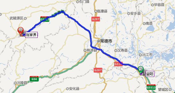 益陽(yáng)市到張家界自駕車路線圖