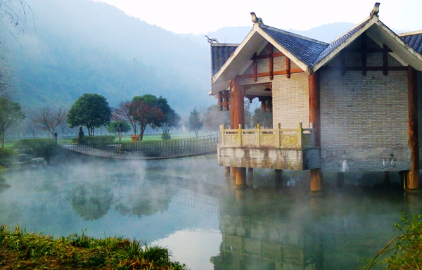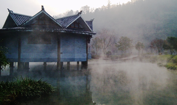 “泉源沸涌,浩氣云浮。”據(jù)了解,黃龍洞生態(tài)廣場(chǎng)的水源出自于洞內(nèi)的地下河,水溫常年保持在16攝氏度左右。當(dāng)從洞內(nèi)流淌出來的溫暖水流與洞外的低溫空氣相遇之后,頓時(shí)形成沸騰的水汽,從而形成“浩氣”景觀。